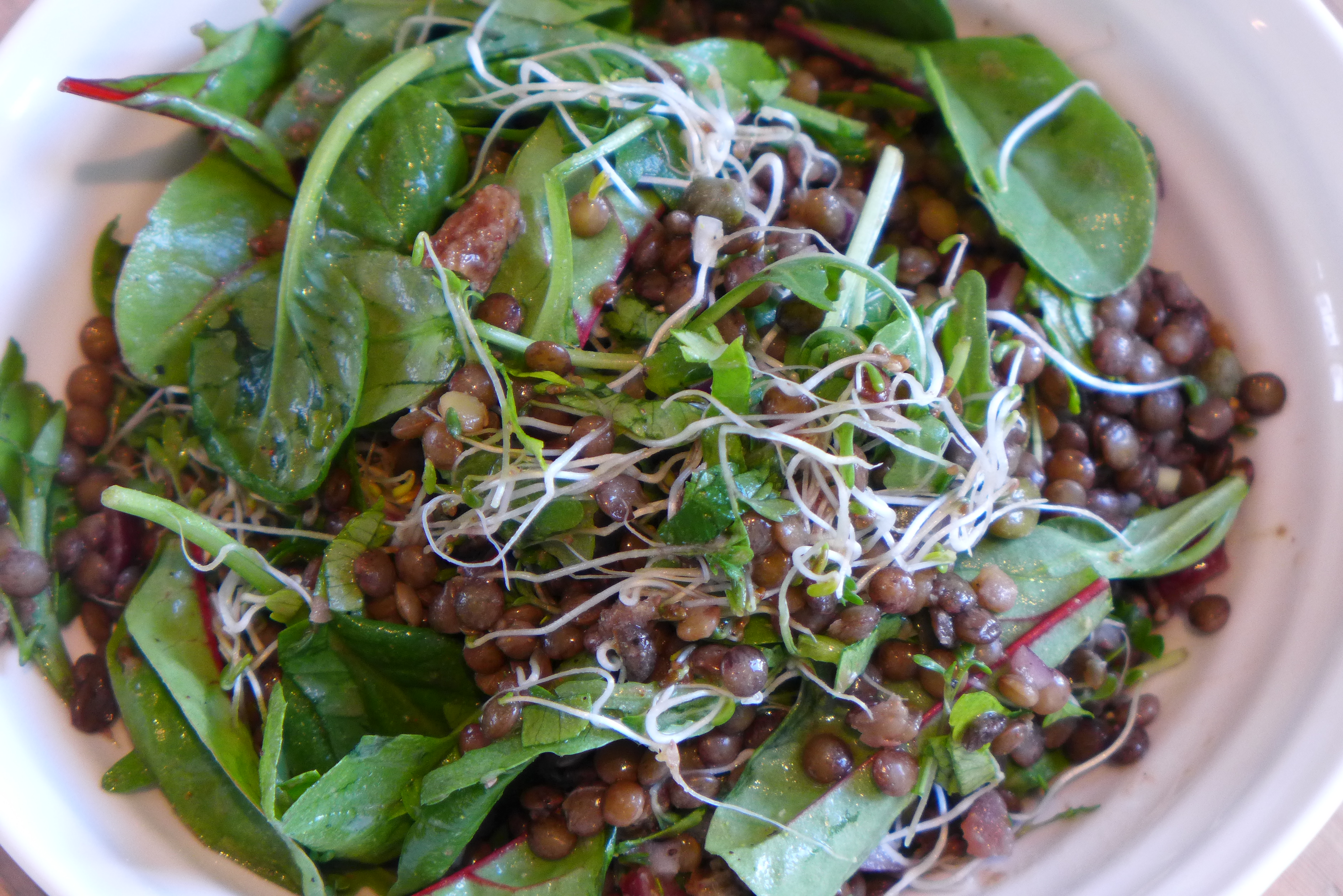 - 5 dl Puy lentils, boil for 15-20 mins. Check after 15 mins. They must be ‘al dente’. Rinse to stop cooking process, but keep warm