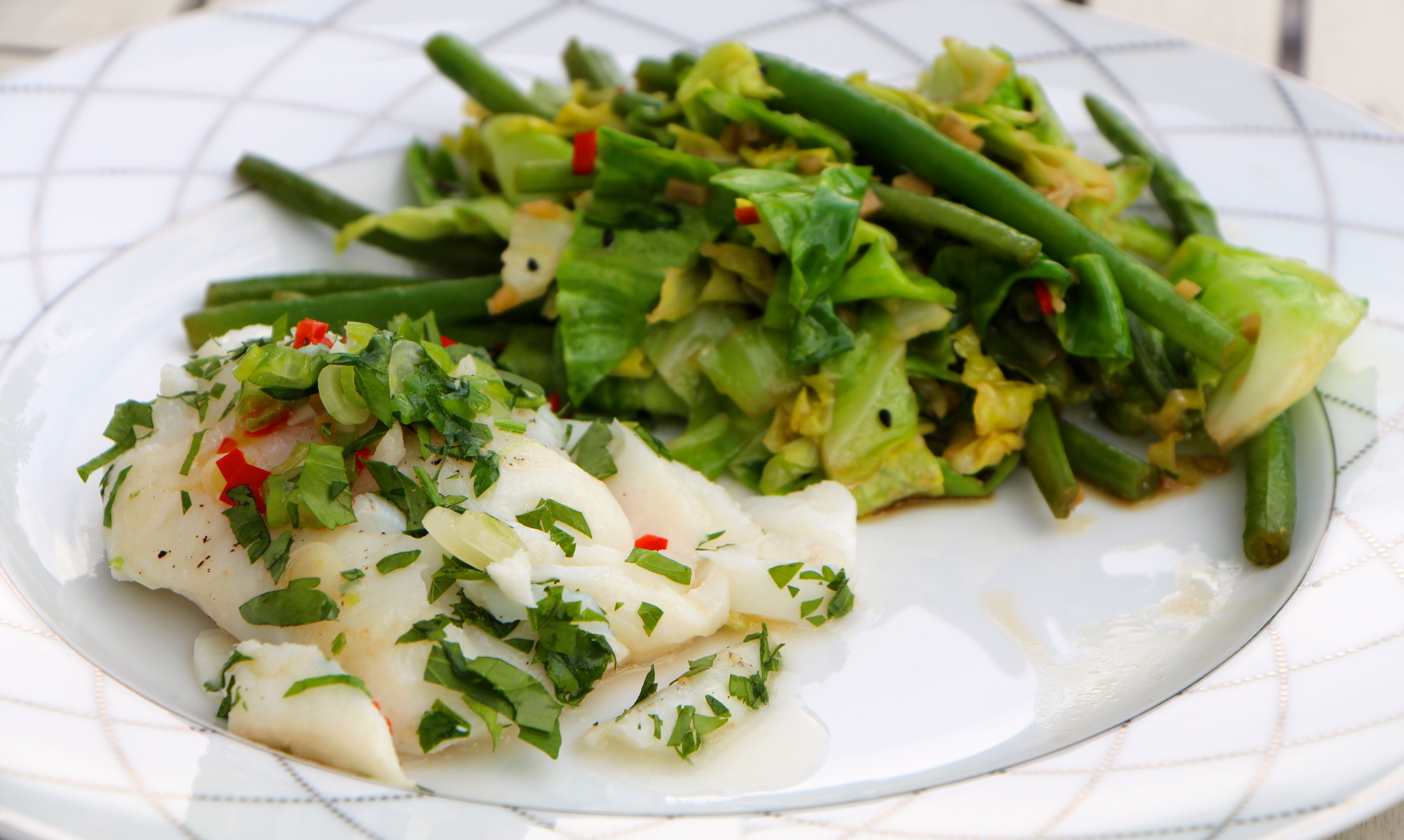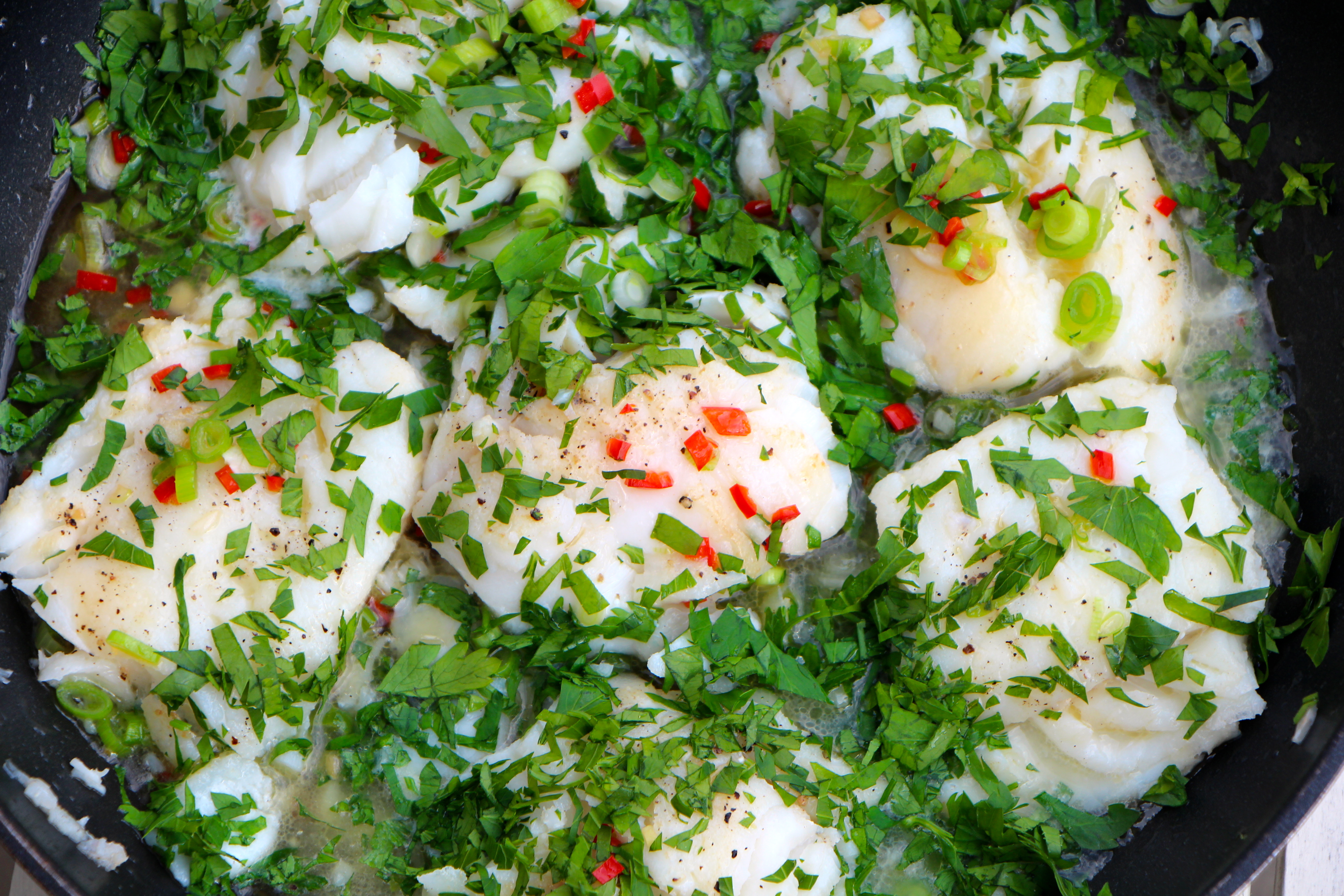 Cod with soy-sauce, butter, chili, garlic and lots and lots of parsley