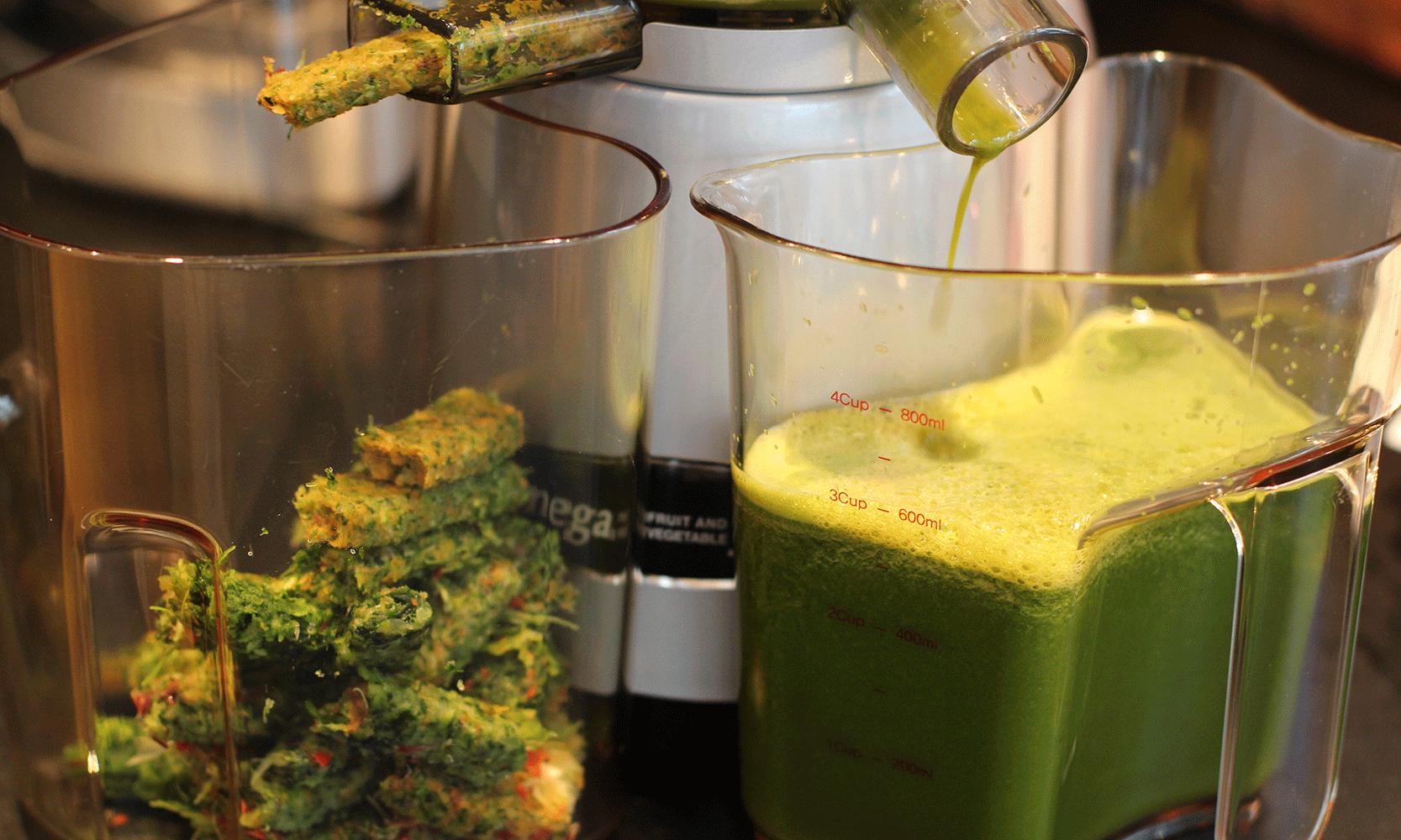 Er du så heldig å eie en slowjuicer, bør du prøve denne superjuicen. Den både smaker godt og gjør godt! Spinat inneholder bla kalsium, jern og kalium mens kiwi og paprika inneholder høye mengder av C-vitamin, noe som hjelper kroppen å ta opp jernet fra spinaten. C- vitaminer er også viktig for å styrke immunforsvaret og hjelper å holde huden frisk og glatt, og betakaroten i gulrøttene omdannes til A-vitamin som igjen lagres i hudcellene og gjør den mer motstandsdyktig. Og da har jeg ikke begynt å fortelle alt det gode stangselleri, sitron og eple gjør…:)