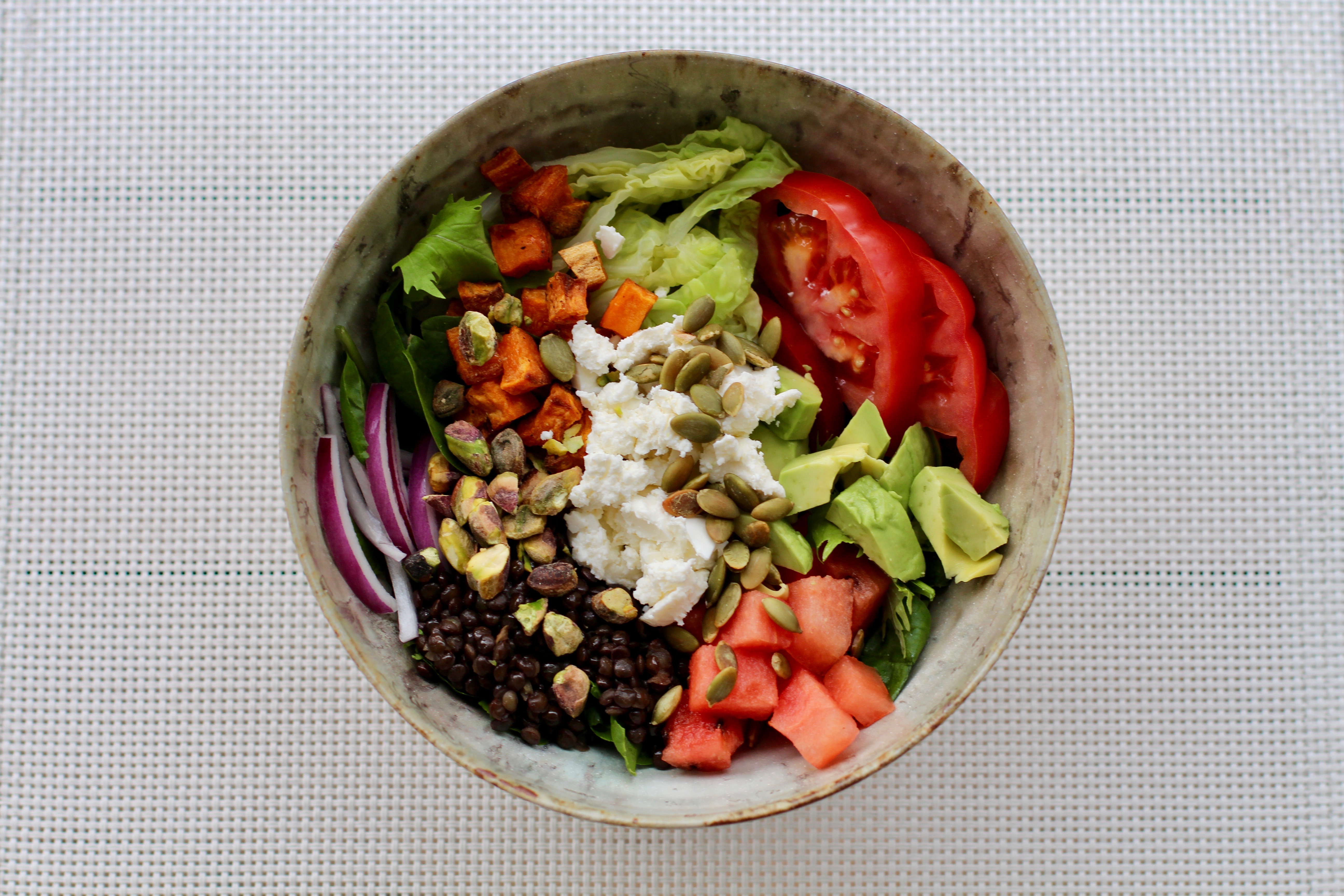 Buddha bowl er betegnelsen på en bolle fylt med et utvalg av proteiner, grønnsaker, korn, frø og dressing. Her har jeg laget en deilig versjon for Apetina hvor jeg har brukt puylinser og ovnsbakt søtpotet for å få litt substans i retten.