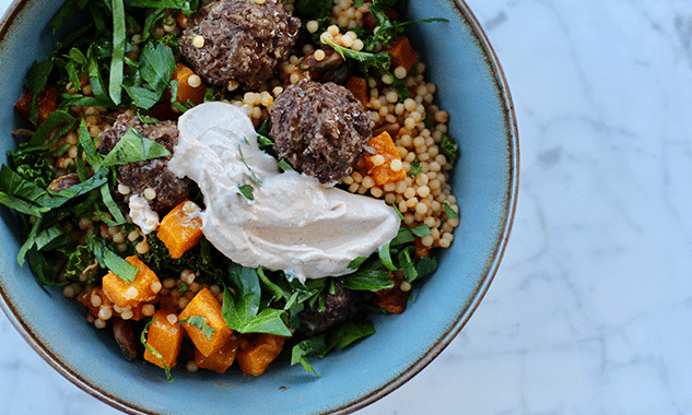 Perlecouscous, eller Israelsk couscous som det også heter, er sååå mye morsommere å spise enn vanlig couscous synes jeg. De store kulene har en deilig konsistens- nesten som pasta.. Pass på at du koker dem al dente- altså ikke for lenge, men så de akkurat har litt tyggemotstand. Her gjelder samme som over: let litt ekstra etter denne varianten, i butikker og på nett. Alternativt kan du bruke vanlig couscous:)