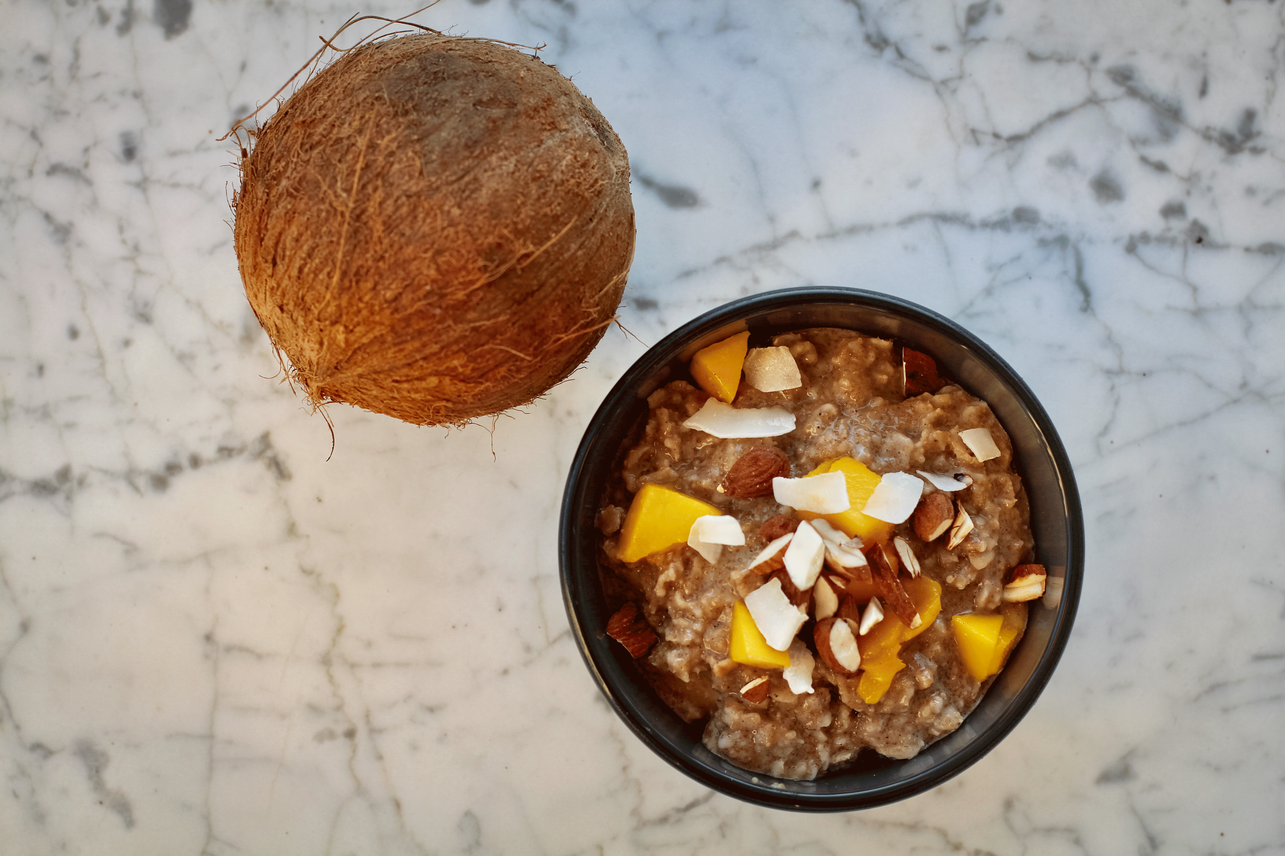 Dette er en deilig, mettende, sunn og god grøt med smak av kokos og mango. Du kan velge å legge i mangoen helt mot slutten hvis du ønsker en friskere smak, men denne fremgangsmåten gir retten en søt og varm smak av mango som passer veldig godt sammen med de andre smakene i grøten. Du kan gjerne bytte ut mangoen med andre frukter som f.eks ananas, pære eller bananbiter. Prøv deg frem!