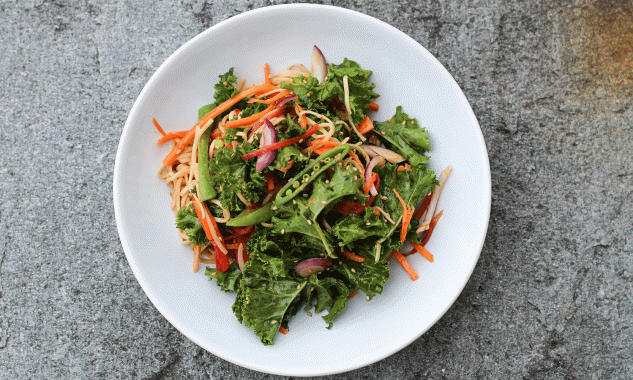En av mine absolutt favoritt-grønnkålsalater er denne salaten her, men mulig denne grønnkålsalaten med asiatisk dressing blir en ny favoritt. Du kan gjerne droppe nudler for å lage en helt enkel men veldig smakfull salat, eller du kan bruke nudler som i oppskriften, og gjerne tilsette tofu eller kylling for å få den ennå mer mettende (se how-to under).