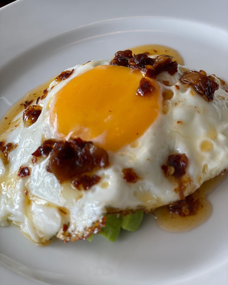 Denne chilioljen lager jeg med jevne mellomrom og jeg har alltid et glass stående i kjøleskapet. Den er superspicy- akkurat som jeg liker den- men med en sødme fra løken og en dybde/aroma fra krydderet som gjør den til så mye mer enn bare en spicy olje. Jeg bruker den som topping på stekte egg, i pasta/nudler, på kjøtt og fisk, på stekt tofu, på de fleste grønnsaksretter, bønner, de fleste asiatiske retter…egentlig på det meste.